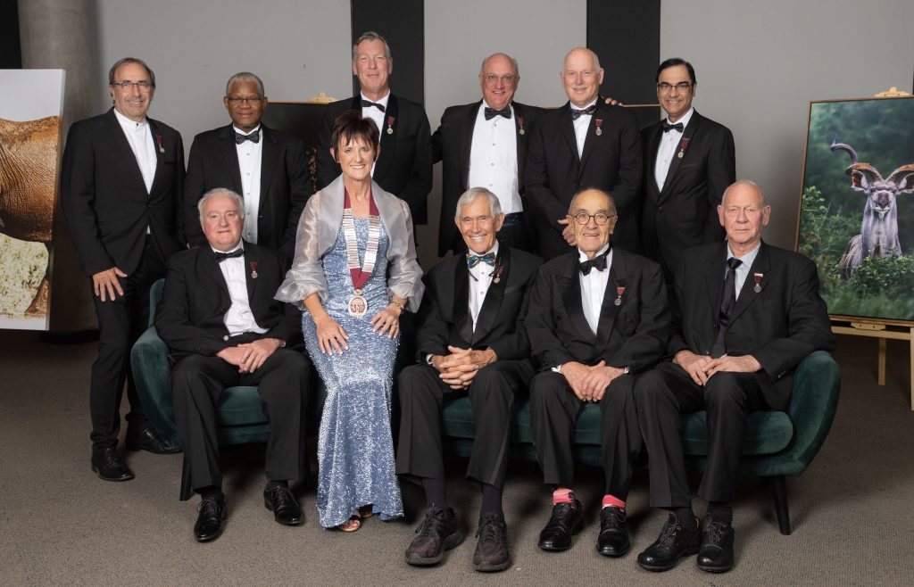 From left to right. Front row: Theo le Roux, Odette Koch, Anton Scheepers, Jos van Niekerk, Gert Vlok Back row: Brian Bernstein, Mthunzi Ngcelwane, Robert Dunn, Philip Webster, Allan van Zyl and Pradeep Makan