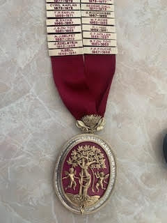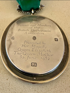 The Jewel of Office, featuring the maroon ribbon and the protea and springbok emblem, was bestowed upon the South African Orthopaedic Association (SAOA) on 30 June 1952 by Her Majesty Queen Elizabeth, The Queen Mother.